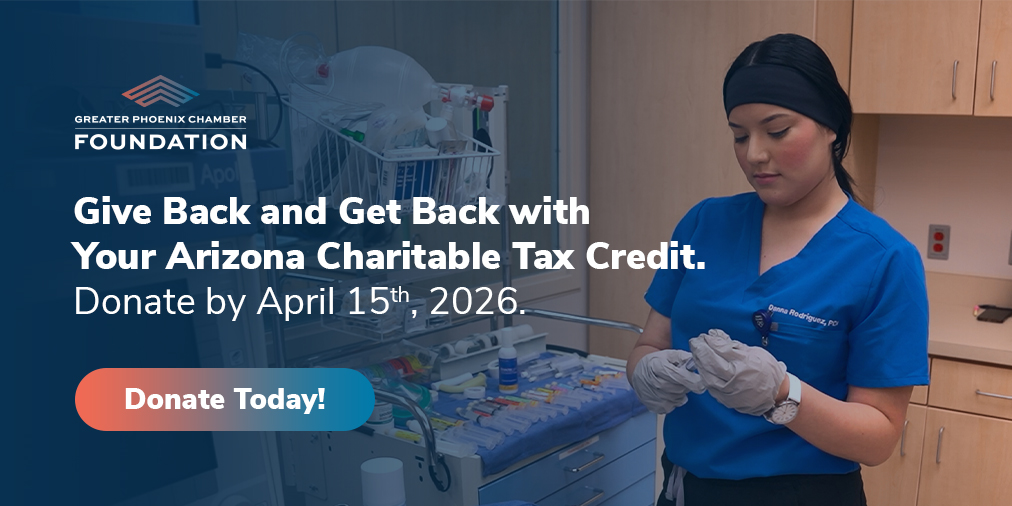The Foundation, a 501c3 nonprofit organization, leads the charitable and education initiatives of the Greater Phoenix Chamber under the four pillars of education, workforce development, wellness, and research. Through strong alignment between education, business, and community, the Foundation prepares individuals for college and career and serves as an intermediary to convey workforce needs and champion scalable workforce solutions. In addition, the Foundation makes Arizona and the Greater Phoenix region known as destinations for healthy talent and healthy communities through workplace wellness efforts and publishes data-driven research to inform policymakers, business leaders, and the general public.